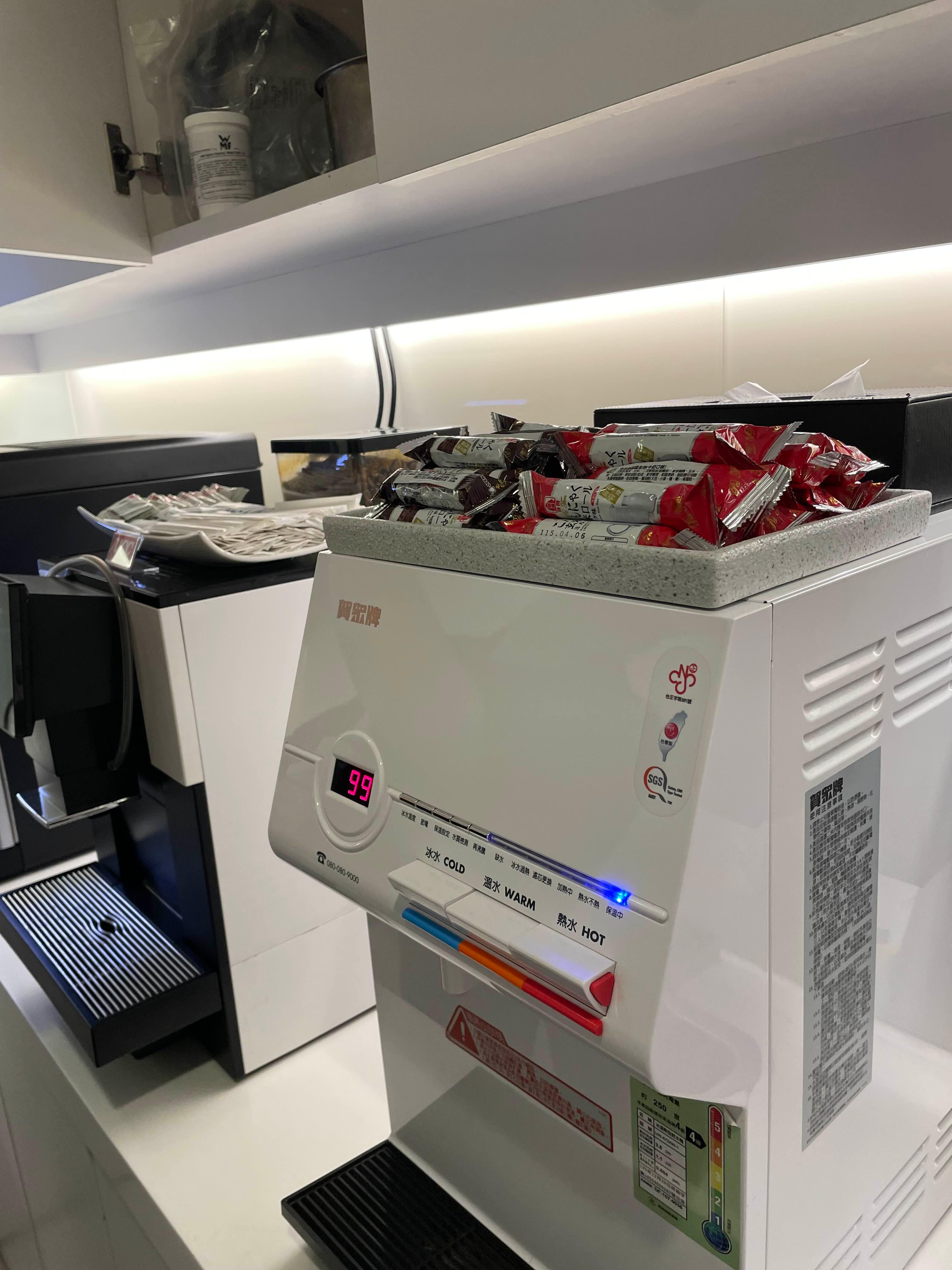 키친에 정수기랑 밀크티 자판기, 과자 등등이 있다.