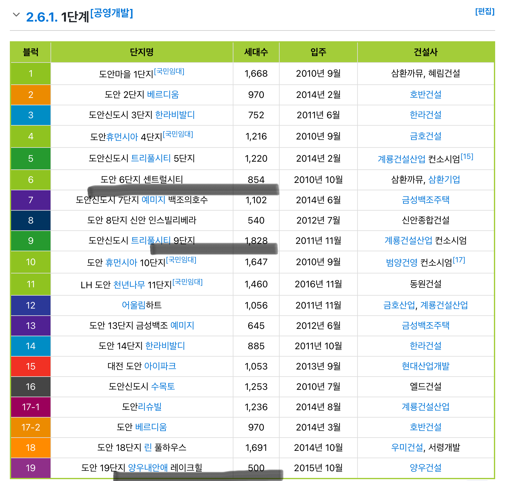1단계 도안신도시는 총 19개 블록으로 이루어져 있고, 각각 목록은 다음과 같았다. 나무위키에서 꼼꼼히 도안신도시 내용을 찾아보았다.