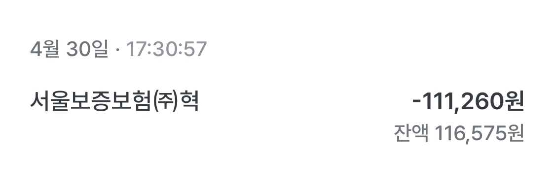 보증 이행 보험 까지도 잘 마치고나니 보험으로 11만원 정도 지출 했고,