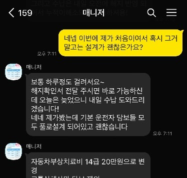 운전자 보험 월 1만5천원짜리 들고 있어서,