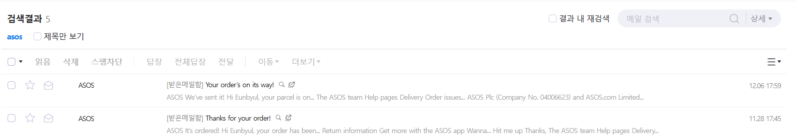 그래서 배송비가 따로 붙지않는 아소스로 가서 구매했다.