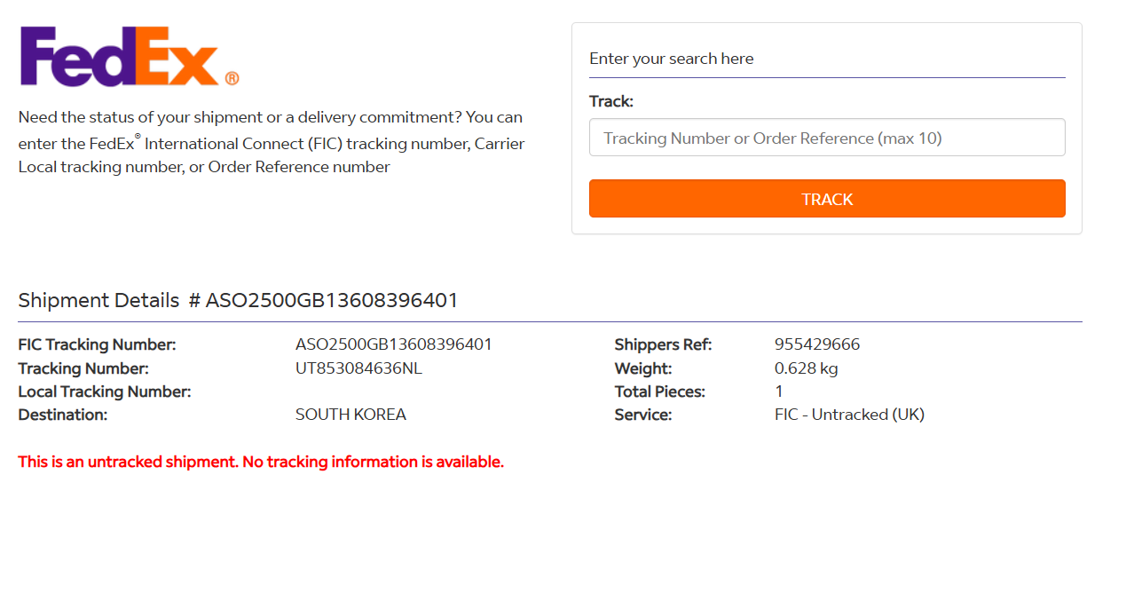 발송했다는 메일에 fedex 트랙 시스템이 있긴 했는데 눌러봤자