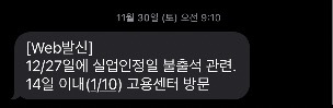 제가 고용복지센터에 불출석을 이야기하자, 다음과 같은 문자를 받았습니다.