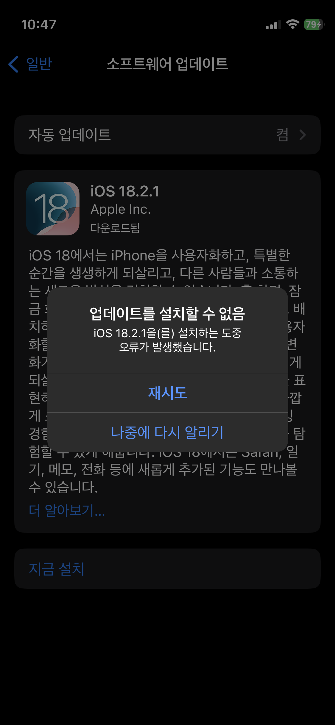 그런데 문제는 ios 업데이트도 계속 실패하고 안되더라구요.