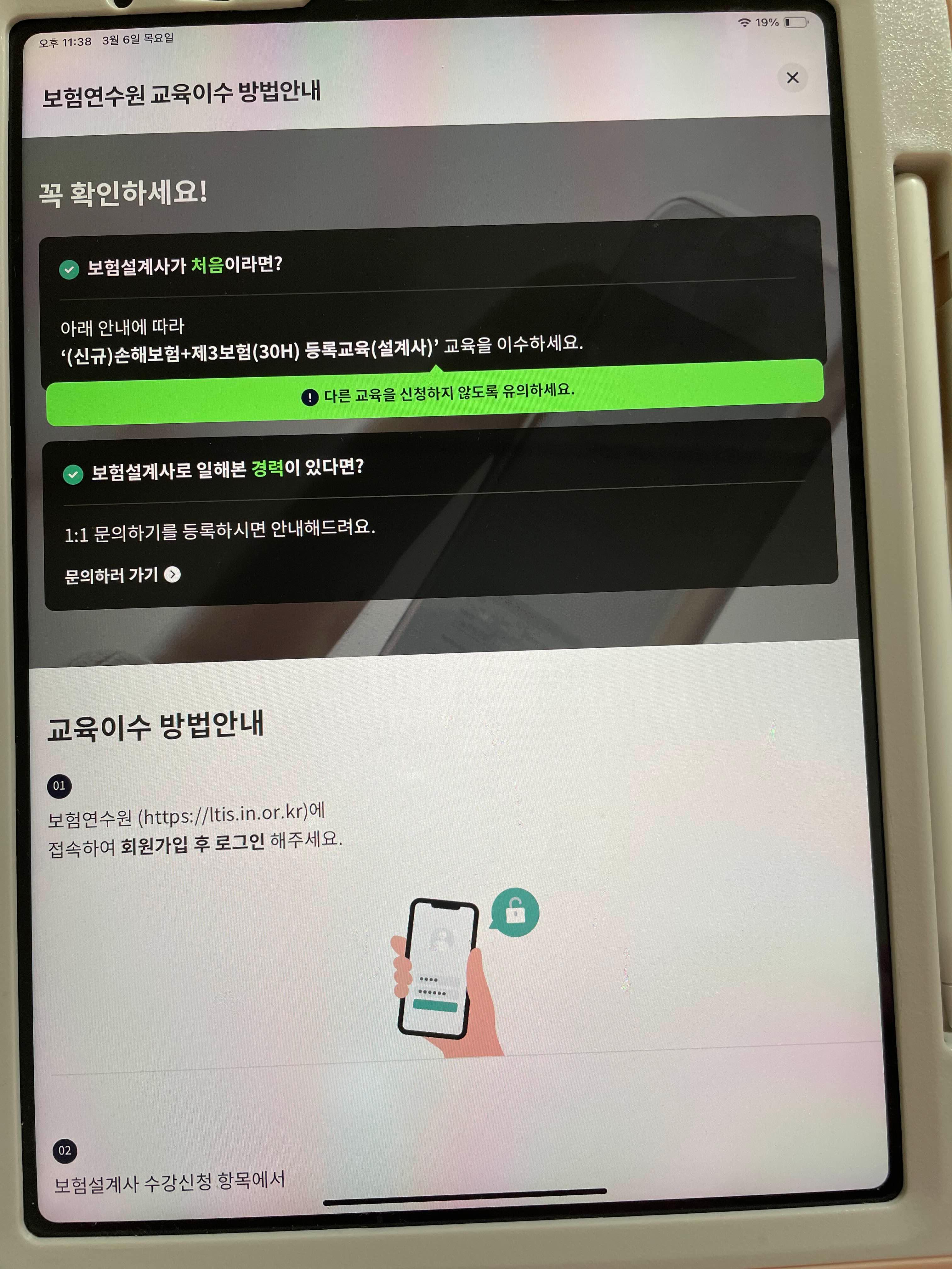 손해보험 + 제3보험 등록 교육을 30시간 이수해야한다.