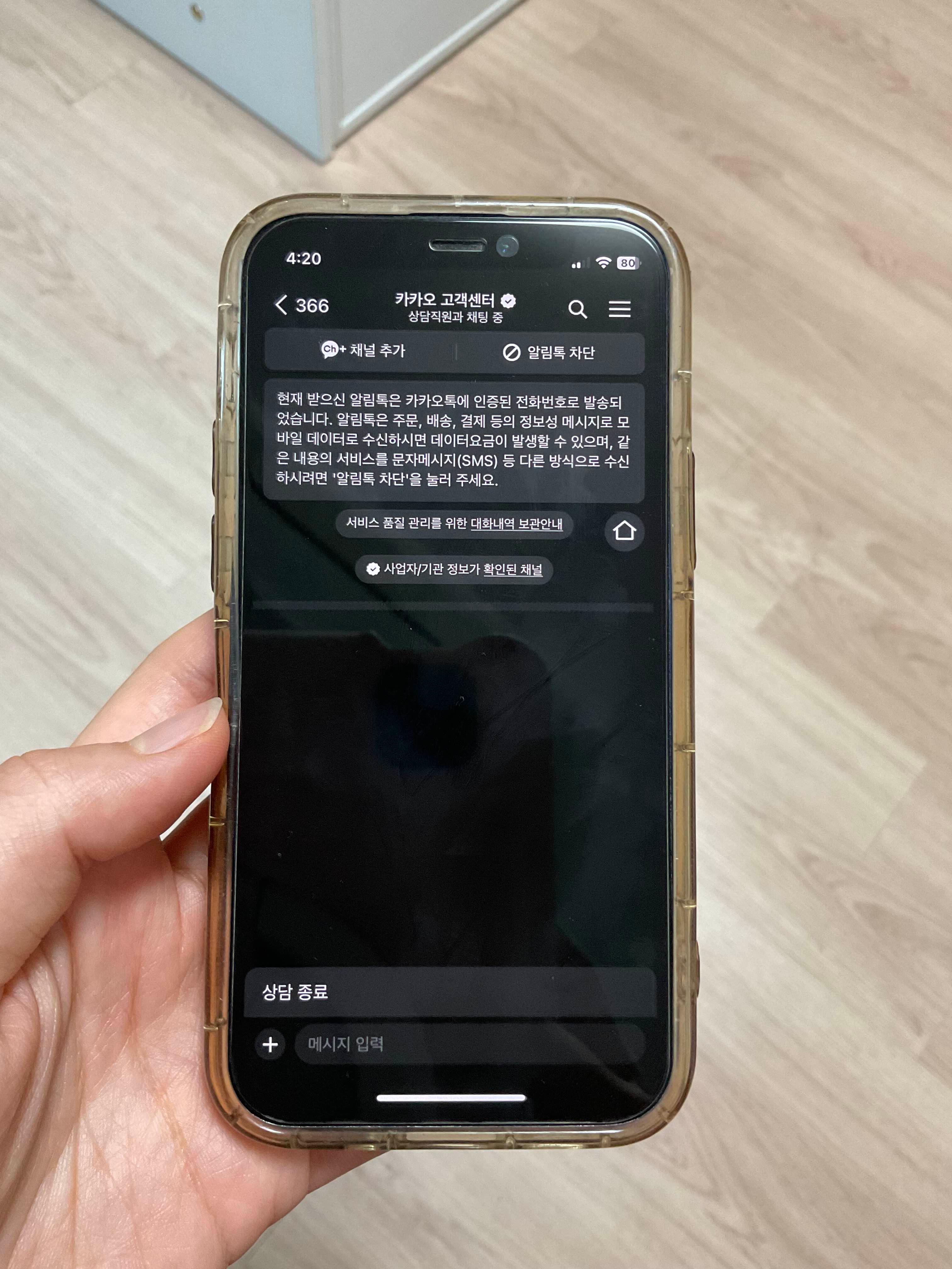 그래서 바로 카카오톡 고객센터에 톡을 남겼고,