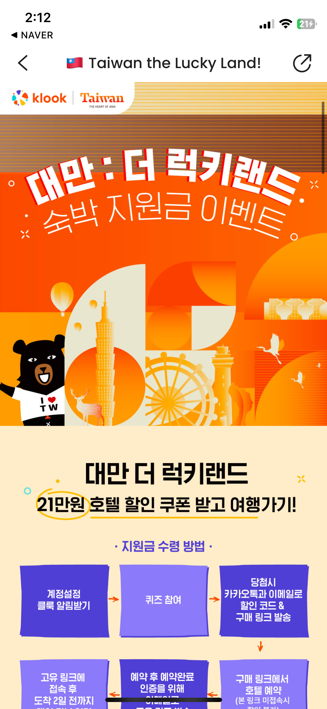 타이베이 공항 클룩 숙박지원금 수령(5월 연휴) (0) | 2025.05.06 |