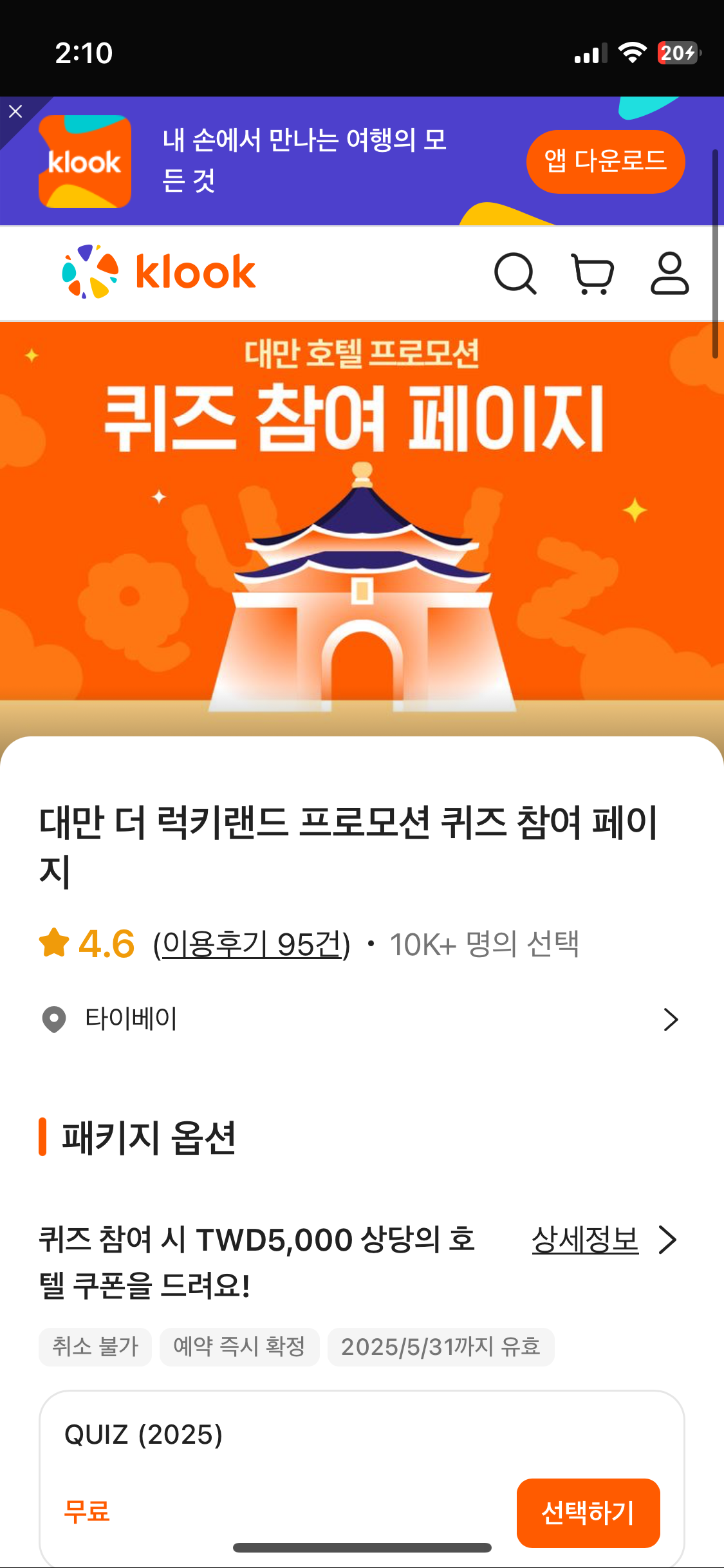 클룩 대만 럭키랜드로 숙박지원금 7차 예약했어요 (럭키드로우 호텔 추천)