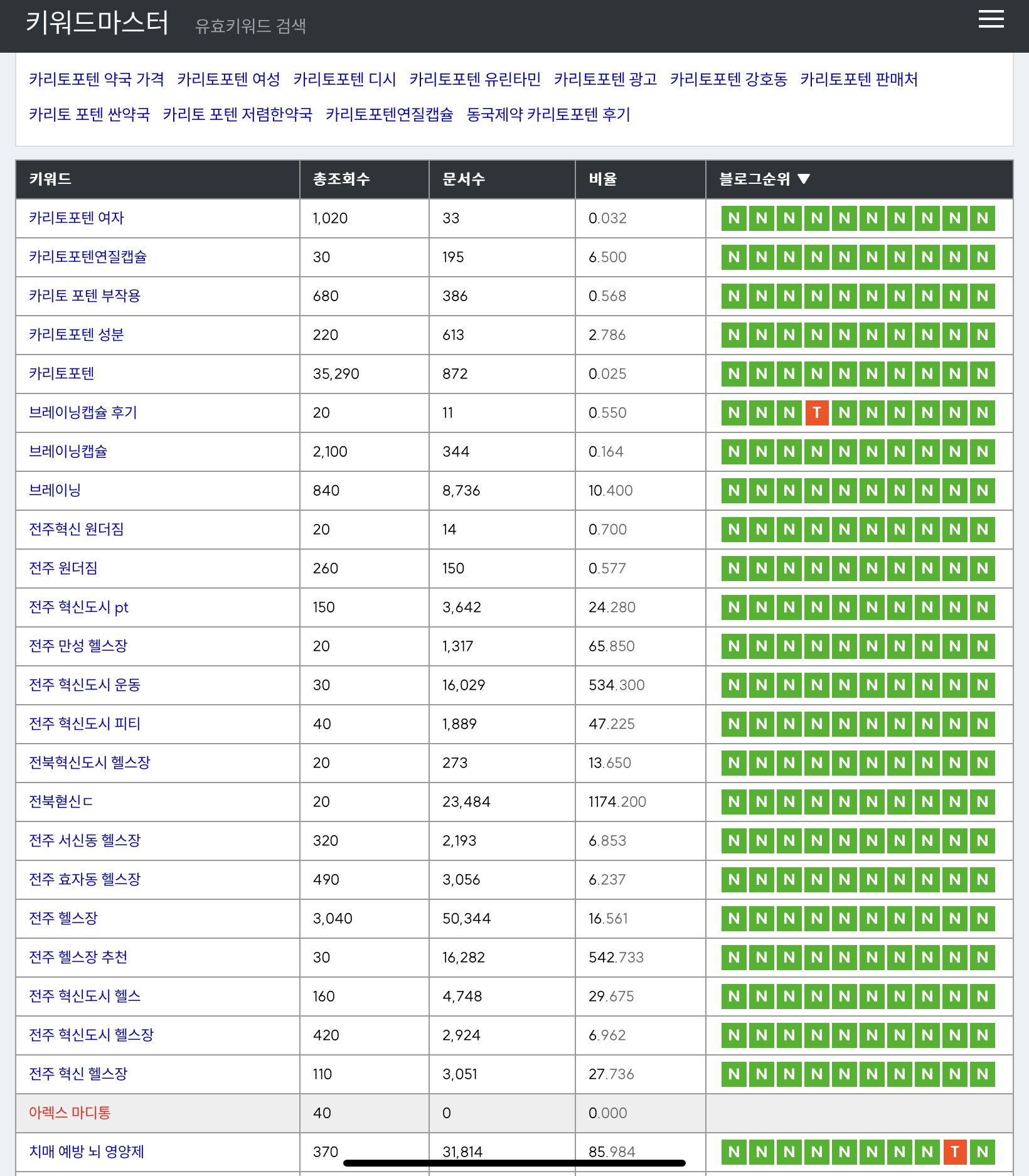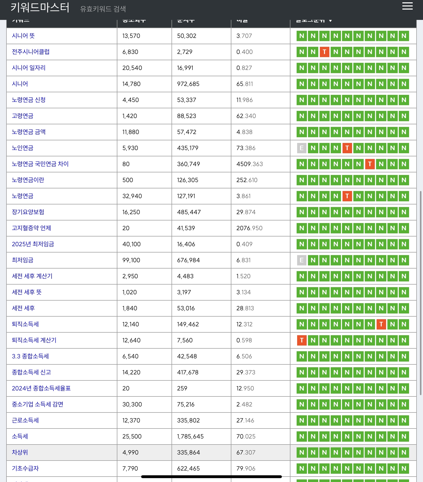 키워드 마스터로 여러단어를 검색해보면서 내가 느낀 점을 정리해보려고 한다.