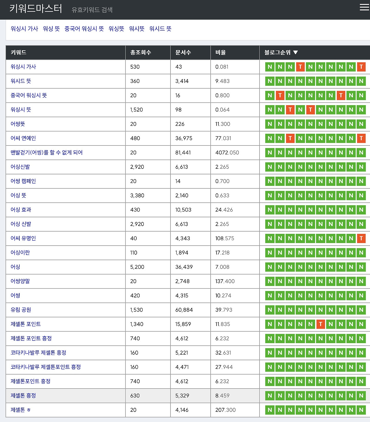 그래서 키워드의 조회수와 문서수를 비교할 수 있는 웹 사이트를 발견했다.