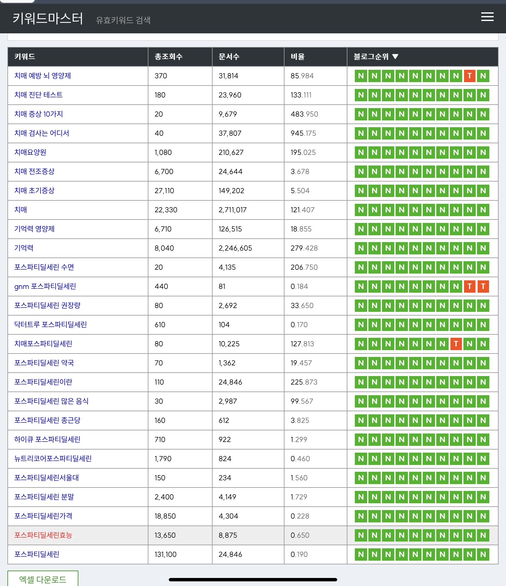 또 미녹시딜도 좋은 키워드라고 생각된다. 월간 검색량 5만, 문서수는 그보다 적다.